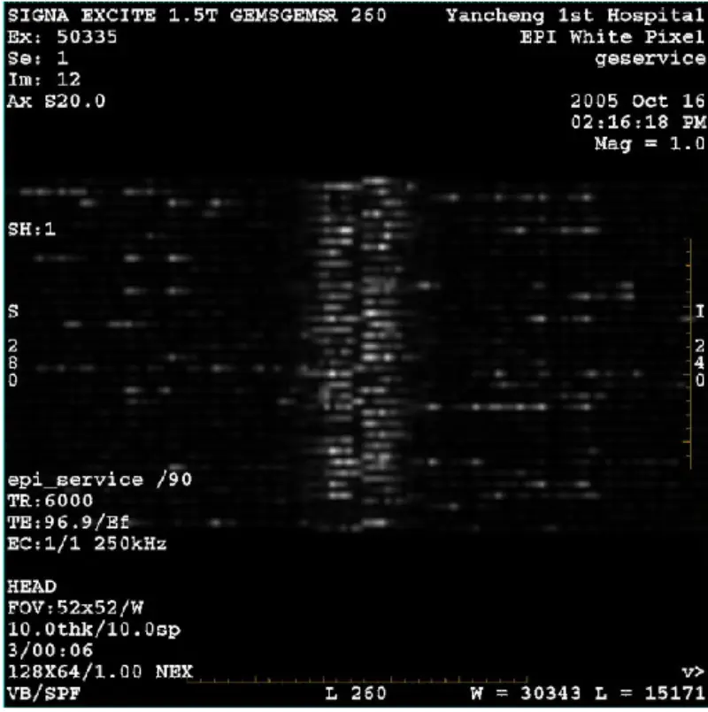 11. Deconectați fibră optică X,Y și Z Gradient Drive de la placa GP, capul pixelului alb EPT și scanarea corpului. rezultatul este trecerea. Indică faptul că pixelul alb este indus de gradient. Am văzut că pixelul alb nu este prezent doar pe o axă. Apoi înlocuiți SGA PS, placa GP, dar problema rămâne. Reconectați fibră optică X,Y,Z Gradient Drive.